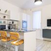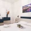 L'ampia area giorno è uno spazio luminoso e accogliente, arricchito da una cucina a vista moderna e completamente attrezzata, ideale per soddisfare ogni tua passione culinaria. La smart TV, il divano comodo e il letto matrimoniale con angolo studio creano un ambiente multifunzionale e raffinato.