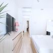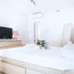 La camera matrimoniale è un vero rifugio di tranquillità e comfort, dotata di un letto a contenitore per massimizzare lo spazio disponibile, un armadio con cassettiera per una perfetta organizzazione degli spazi, una smart TV per intrattenimento privato e un balcone arricchito da tende oscuranti che garantiscono privacy e riposo ininterrotto.