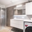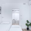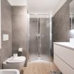 Il bagno, modernamente rifinito, offre una spaziosa doccia walk-in in vetro, completata da una funzionale lavasciuga, che eleva il livello di praticità dell'appartamento. Infine, una seconda camera spaziosa offre la flessibilità di ospitare fino a quattro letti singoli, rendendola ideale per famiglie o gruppi di amici, completata da una cabina armadio che risponde a ogni esigenza di spazio e organizzazione.