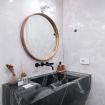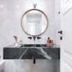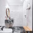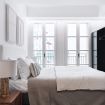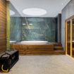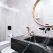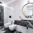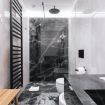 La spaziosa camera matrimoniale è un’oasi di tranquillità, arredata con gusto e dotata di un ampio armadio che offre abbondante spazio per il guardaroba. Ogni dettaglio è stato curato per garantire il massimo del comfort e dello stile. Il bagno, interamente rivestito in marmo bianco e nero, è un capolavoro di design con una spaziosa doccia walk-in in vetro, perfetta per un’esperienza di lusso quotidiana. La pavimentazione in parquet scuro posato a spiga aggiunge un ulteriore tocco di eleganza e calore a tutto l’ambiente, creando un’atmosfera accogliente e raffinata.
