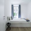 L'area notte, ampia e confortevole, è dotata di comodo letto matrimoniale, uno spazio ideale per rigenerarsi dopo le lunghe giornate milanesi.