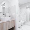 Il bagno, dal design contemporaneo, è equipaggiato con una spaziosa doccia walk-in, perfetta per rilassarsi dopo una giornata trascorsa esplorando la città. Le finiture di alta qualità e l'attenzione ai dettagli rendono questo spazio un vero rifugio di benessere.