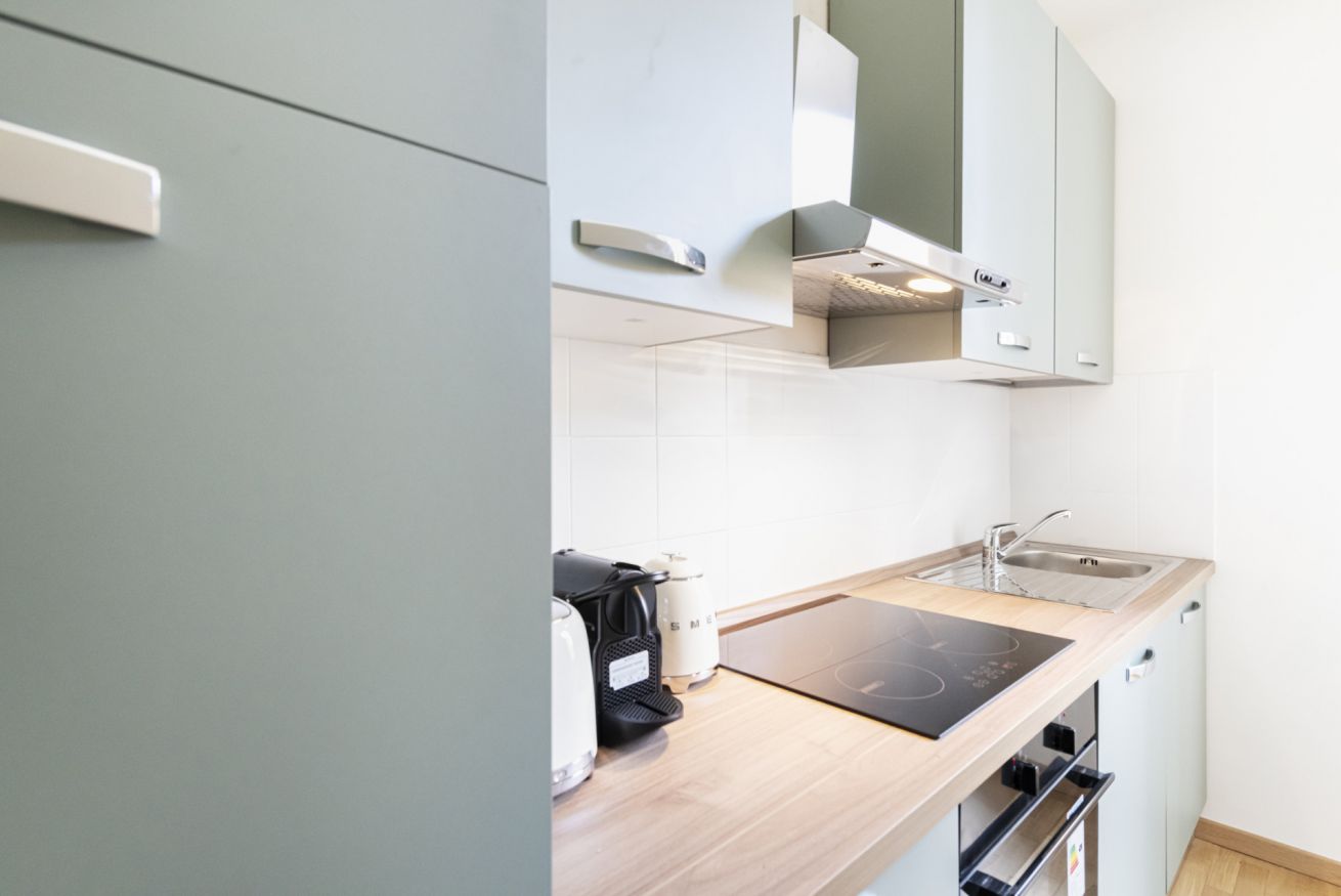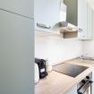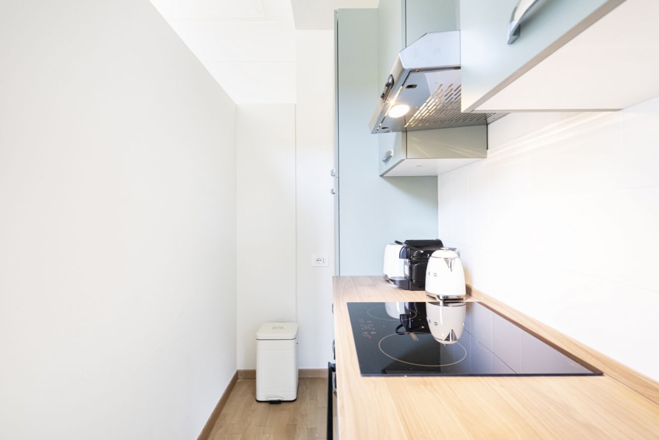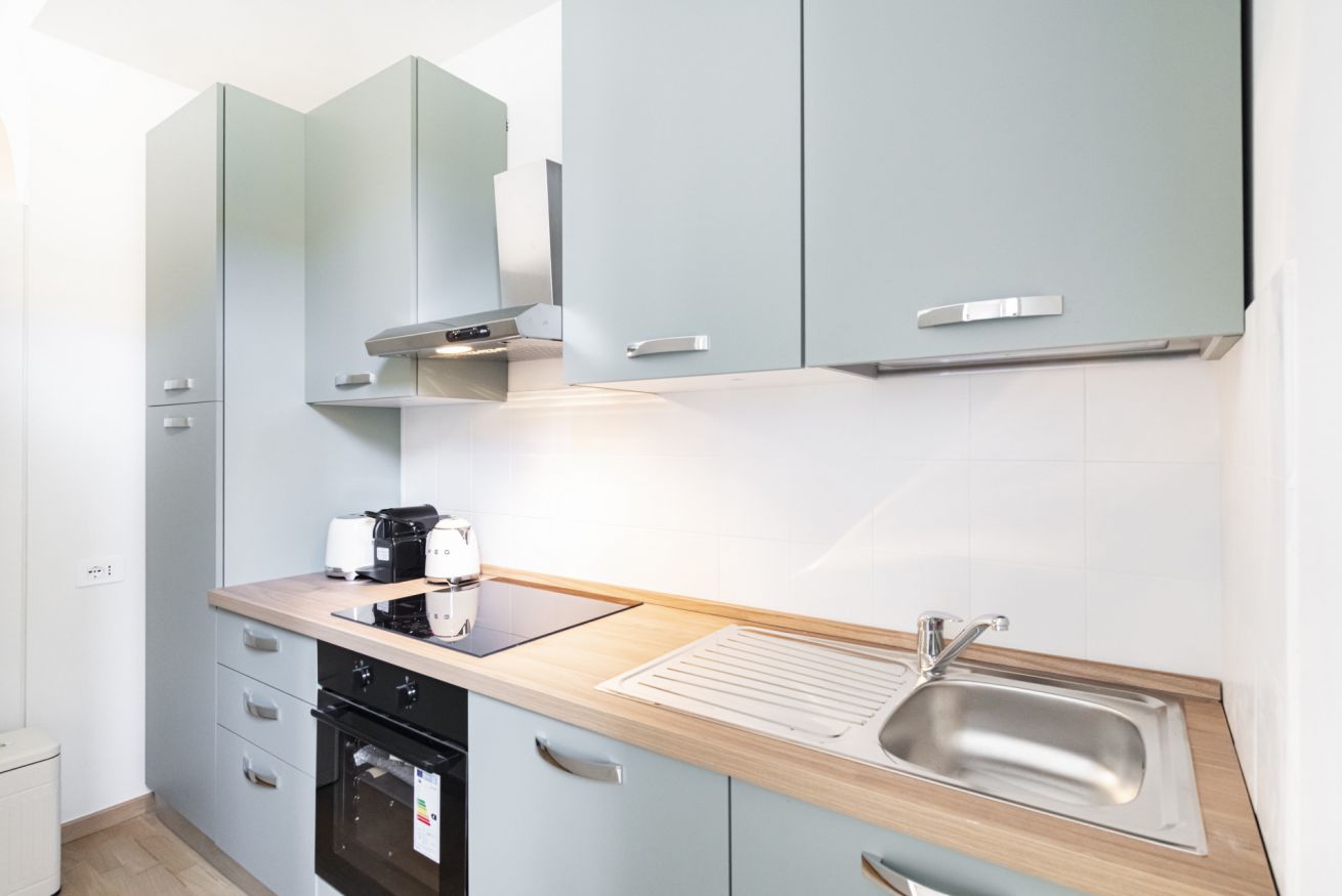 Adiacente al soggiorno si trova la cucina lineare di nuova realizzazione, progettata con linee pulite e moderne e dotata di elettrodomestici funzionali, pensata per offrire praticità e ordine senza rinunciare allo stile. La sua posizione strategica consente una perfetta connessione con la zona living, mantenendo al contempo una piacevole distinzione degli spazi.