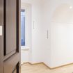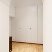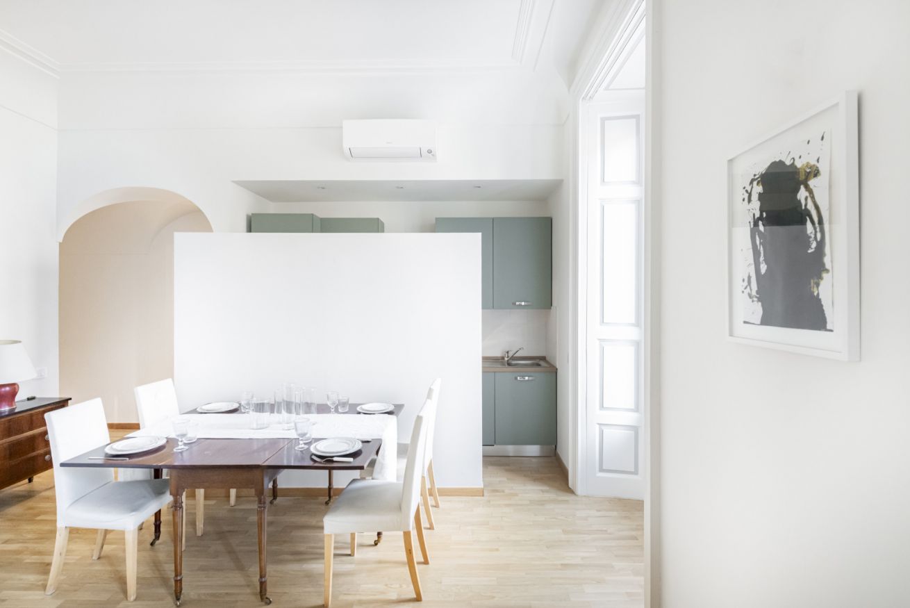 L’ingresso si sviluppa lungo un corridoio ordinato e raffinato, arricchito da pratici armadi a scomparsa che assicurano ampi spazi contenitivi senza compromettere l’estetica. Questo percorso introduce direttamente nella zona living, il vero cuore della casa, caratterizzata da un’atmosfera accogliente e sofisticata. Il comodo divano invita al relax, mentre la zona pranzo, perfettamente integrata, crea uno spazio conviviale ideale per cene, momenti di condivisione o semplici pause quotidiane.