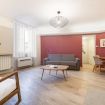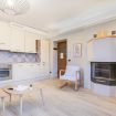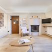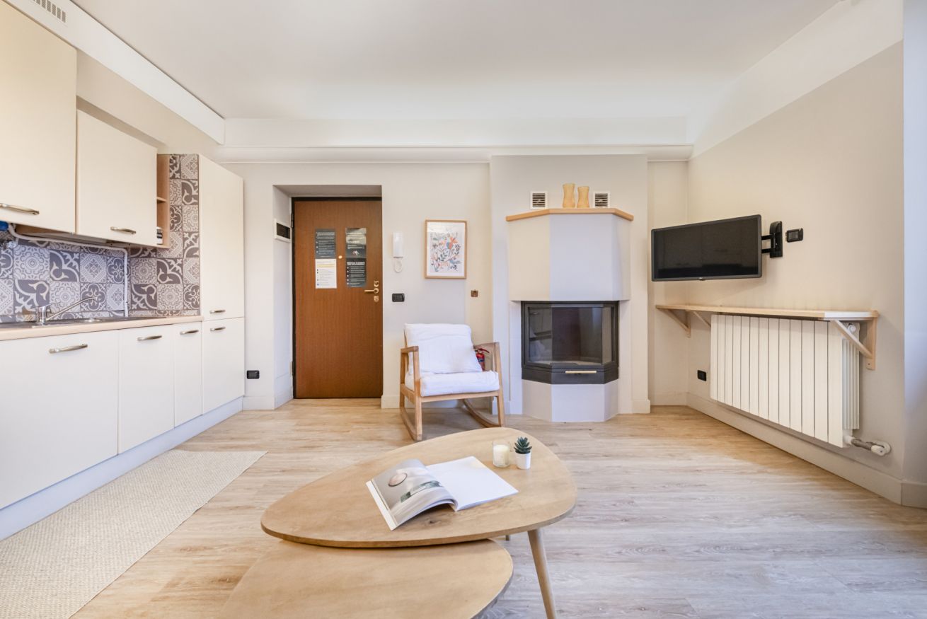 Raffinato appartamento climatizzato al 4° piano con ascensore, inserito in un elegante contesto residenziale. L’ingresso conduce a una luminosa zona living caratterizzata da pavimenti in legno chiaro, divano grigio, tavolini in legno dal design organico e TV a parete. L’ambiente è valorizzato da un camino decorativo integrato nella parete, che dona carattere e un’atmosfera accogliente all’intero spazio.