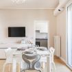 Stupendo appartamento ristrutturato al 7° piano con ascensore in condominio signorile con portineria. Ingresso su elegante zona living con divano letto, smart TV, zona pranzo e accesso a balconcino. Cucina su misura con elettrodomestici, ampia camera matrimoniale con armadio a muro e TV a parete, bagno moderno con doccia walk-in. Interamente climatizzato, in ottima zona, perfetto mix di comfort, stile e funzionalità.
