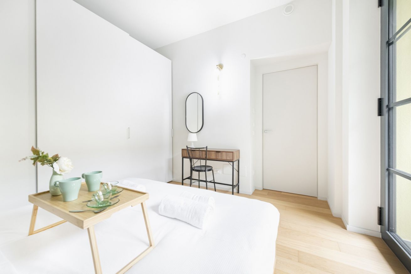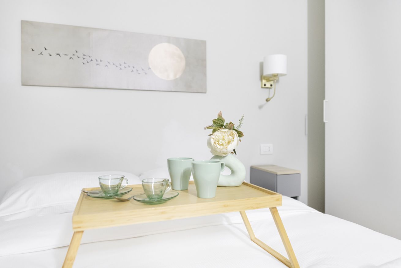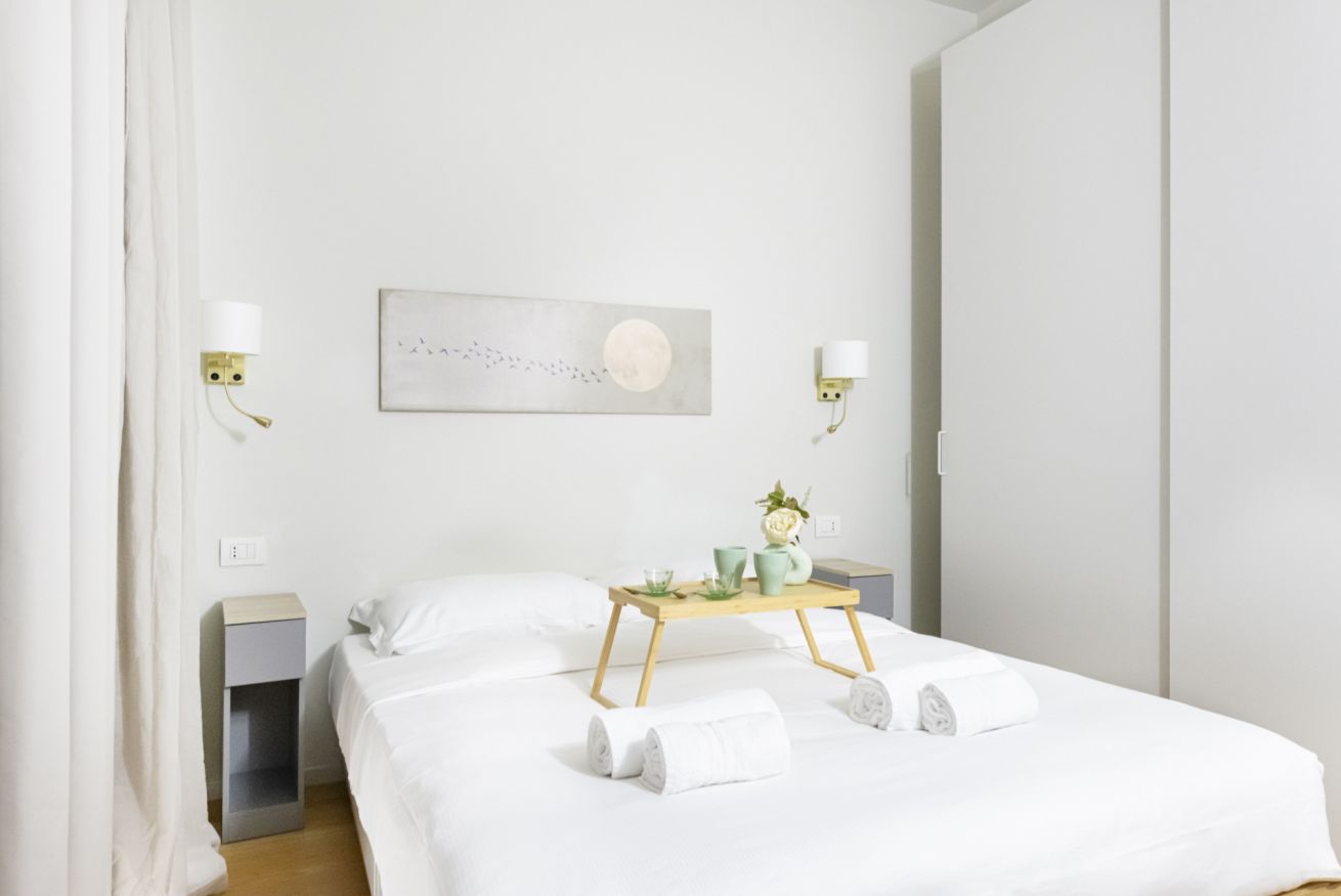 La camera matrimoniale offre un’atmosfera intima e rilassante, impreziosita da un grande armadio ad ante scorrevoli e finiture contemporanee.