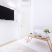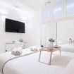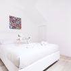 Attraverso un'elegante scala si accede al piano inferiore, dove si trova la zona notte. Qui, l'ampia camera matrimoniale si distingue per il suo grande armadio a scomparsa con ante a specchio e una seconda smart TV, creando un ambiente intimo e confortevole. Il bagno adiacente è un vero e proprio capolavoro di design, dotato di doppio lavello e una spaziosa doccia in vetro, che aggiunge un tocco di lusso all'ambiente. La seconda camera, dotata di un accogliente queen bed, armadio a scomparsa e smart TV, offre ulteriore spazio per ospiti o per un ufficio in casa.