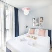 L'appartamento, recentemente ristrutturato con materiali di alta qualità, si distingue per l'armoniosa combinazione di funzionalità e stile. L'ingresso conduce a una luminosa zona living, arredata con un comodo divano letto e una smart TV a parete. La zona pranzo è integrata con una cucina lineare su misura, completa di elettrodomestici moderni, ideale per soddisfare ogni esigenza culinari.