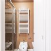 La camera da letto offre un confortevole letto matrimoniale una smart TV a muro e un ampio armadio, garantendo spazio e comfort. Il bagno, dal design contemporaneo, è dotato di una spaziosa doccia walk-in in vetro, offrendo un'esperienza di benessere quotidiano.