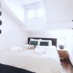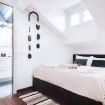 La camera da letto matrimoniale è un rifugio personalizzato, dotato di un armadio a scomparsa che massimizza lo spazio senza sacrificare l'estetica. L'atmosfera è ulteriormente impreziosita da tessuti di qualità e un'illuminazione calda, creando un ambiente sereno per terminare la giornata. Il bagno en-suite è una vera e propria oasi di relax, con una doccia spaziosa e rifiniture moderne che assicurano una sensazione di spa urbana.