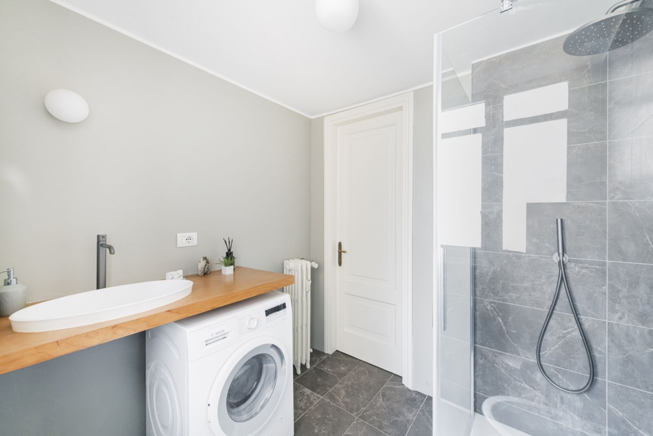 Eccellente appartamento ristrutturato in stabile signorile con ascensore e portineria, al 3° piano e completamente climatizzato. Ingresso su zona living con parquet a spiga, arredi d’epoca, pianoforte, grande divano letto angolare, smart TV e zona pranzo luminosa con balconcino. Cucina moderna con penisola e piano a induzione. Due camere matrimoniali, doppi servizi (uno ensuite), splendidi bagni in marmo con vasca e docce walk-in.