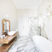 La zona notte si compone di due camere matrimoniali spaziose e ben arredate. La prima, elegante e luminosa, è servita da un balconcino privato. Il bagno padronale, un vero gioiello, è rivestito in marmo dai toni neutri e raffinati, e ospita sia una grande doccia walk-in che una vasca da bagno, per il massimo del relax. La seconda camera da letto, anch’essa ampia e luminosa, dispone di un comodo bagno ensuite completo di doccia.