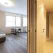 La cucina a vista è il cuore pulsante di questo monolocale, perfettamente attrezzata per soddisfare ogni esigenza culinaria. La smart TV aggiunge un tocco di modernità e intrattenimento, mentre il bagno ampio con doccia offre un'oasi di relax.