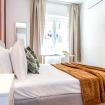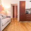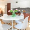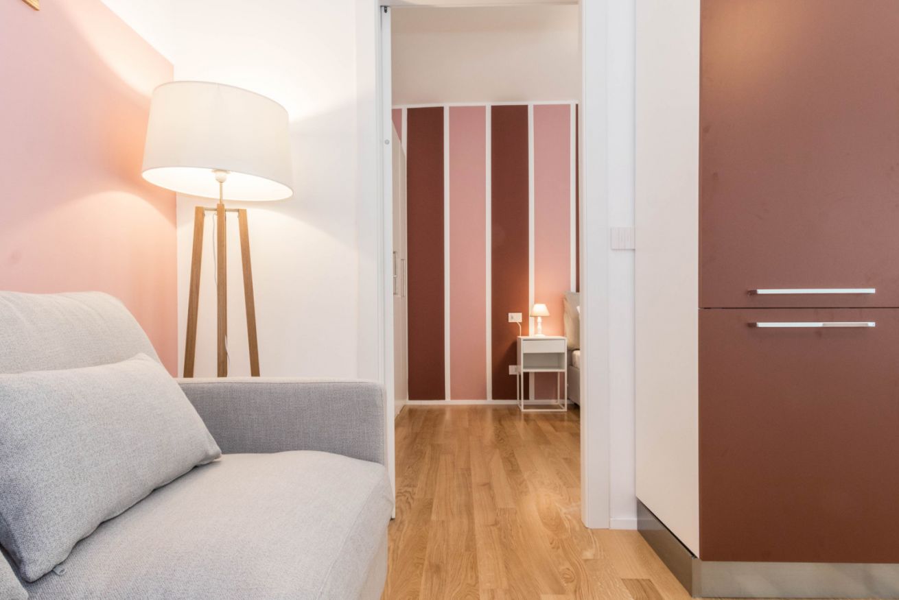 Elegante appartamento al secondo piano con ascensore, situato in curato contesto residenziale e dotato di aria condizionata. Gli ambienti, luminosi e ben distribuiti, si sviluppano in un accogliente open space con cucina moderna dai toni caldi, zona pranzo e living con comodo divano letto. Pavimenti in parquet e dettagli ricercati donano carattere agli spazi. La camera matrimoniale, ampia e raffinata, dispone di spazioso armadio a muro. Bagno moderno con doccia.