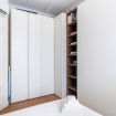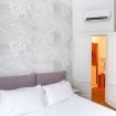 Through the living room, you enter the double bedroom, embellished with splendid wallpaper. The room offers a large custom-made wardrobe and an integrated wall safe.