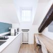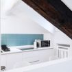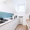Spettacolare appartamento all'ultimo piano, modernamente rinnovato con travi a vista in legno. Offre una zona notte con letto matrimoniale, un living con comodo divano e smart TV, oltre a un angolo cottura equipaggiato con elettrodomestici di ultima generazione. Completa la proprietà un bagno nuovo e spazioso con elegante doccia walk-in di vetro. Perfetto per chi cerca un mix di stile, comfort e modernità.