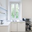 Ogni ambiente rivela una scelta progettuale attenta: materiali raffinati, equilibrio cromatico e soluzioni su misura che enfatizzano la luce naturale, ingrandiscono gli spazi e garantiscono funzionalità senza rinunciare al carattere. Il connubio tra design contemporaneo e comfort dall’ascensore alla portineria, dai divani-letto alle smart TV, dai due bagni ai due ambienti notte rende questa abitazione una soluzione pronta da vivere, pensata per chi desidera vivere Roma con stile, senza compromessi.