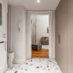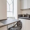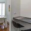 Il monolocale è composto da un raffinato ingresso, che permette di accedere al moderno salotto, con area tv, divano letto e tavolo da pranzo, che affaccia sul tranquillo cortile condominiale e regala pace e tranquillità allo spazio. La cucina è elegante e completamente attrezzata, con forno e piano ad induzione. Completa lo spazio il bagno, con un comodo box doccia.