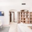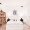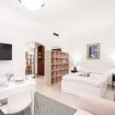 La zona giorno, studiata per ottimizzare ogni centimetro, ospita un letto matrimoniale accogliente, ideale per garantire un riposo rigenerante. L'armadio capiente offre ampio spazio per un'organizzazione impeccabile del guardaroba, mentre il divano, posizionato strategicamente di fronte alla smart TV, invita a momenti di relax e svago. L'illuminazione, studiata per creare un'atmosfera calda e accogliente, accentua il carattere intimo e confortevole dell'appartamento.