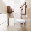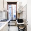 Il bagno, è dotato di una moderna doccia e una lavatrice, elementi che promettono praticità e funzionalità nella gestione quotidiana della casa. La presenza di una portineria attiva nelle ore mattutine aggiunge un ulteriore livello di sicurezza e comodità, facendo di questo appartamento il luogo ideale per chi cerca uno stile di vita dinamico ma senza rinunciare al comfort e all'eleganza.
