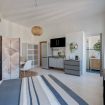 Ad accogliervi, un luminoso soggiorno impreziosito da un divano letto, ideale per un ospite aggiuntivo, e un'atmosfera accogliente che invita al relax. La camera da letto, dotata di un comodo letto e di un ampio armadio con cassetti, promette notti serene e un pratico spazio di archiviazione per i vostri indumenti.