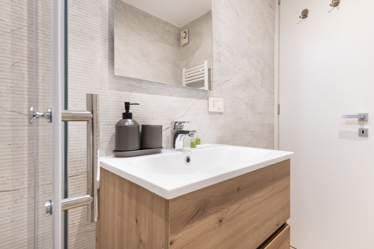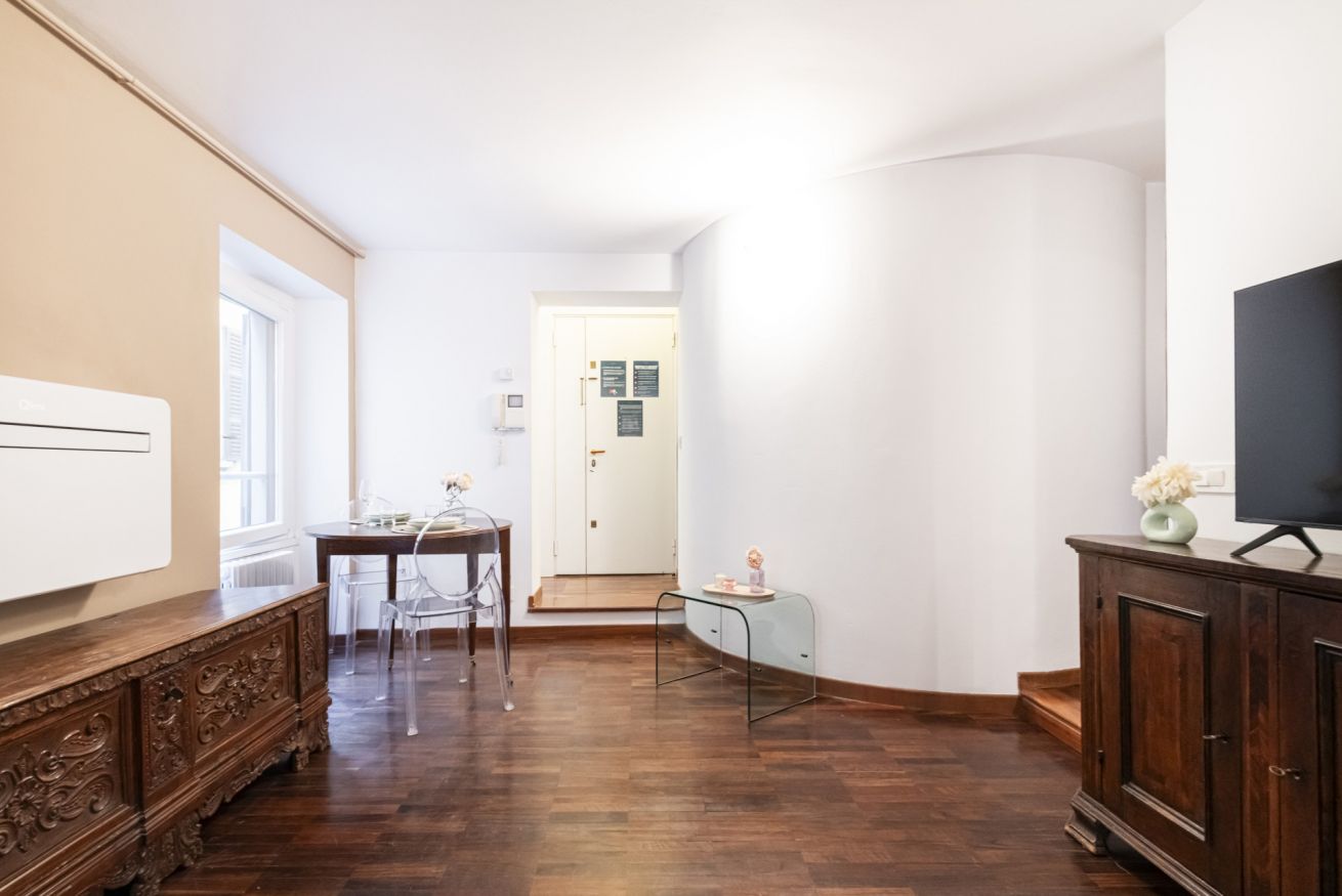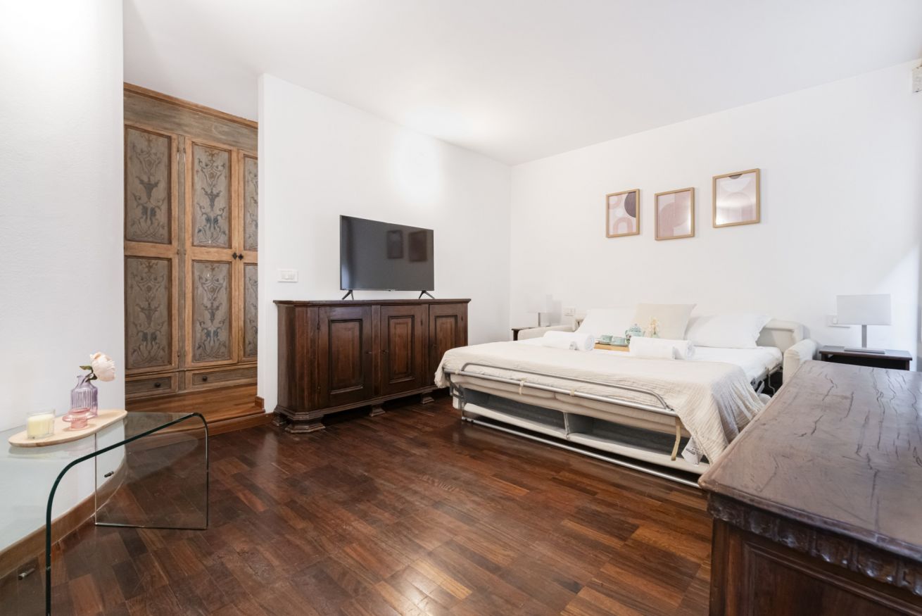 Scopri un raffinato monolocale climatizzato, ubicato al primo piano con ascensore in un elegante stabile nel cuore del quartiere Brera. L’ingresso conduce a un grande open space impreziosito da arredi in legno in stile antico e parquet originale: al centro, un comodo divano letto e una Smart TV a parete definiscono l’area relax; accanto si sviluppa una zona pranzo conviviale. La cucina angolare su misura, pensata per pasti rapidi ma con gusto, è dotata di elettrodomestici essenziali e finiture curate. Il bagno, moderno e funzionale, offre una spaziosa doccia walk-in in vetro, rivestimenti eleganti e comfort contemporanei. Ogni dettaglio – dalla scelta dei materiali al layout intelligente – è studiato per offrire un’esperienza abitativa che unisce charme storico e comfort moderno, in uno dei quartieri più suggestivi e vivaci di Milano.