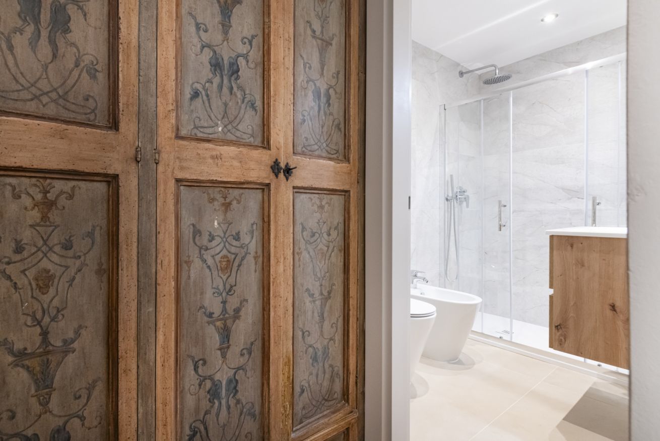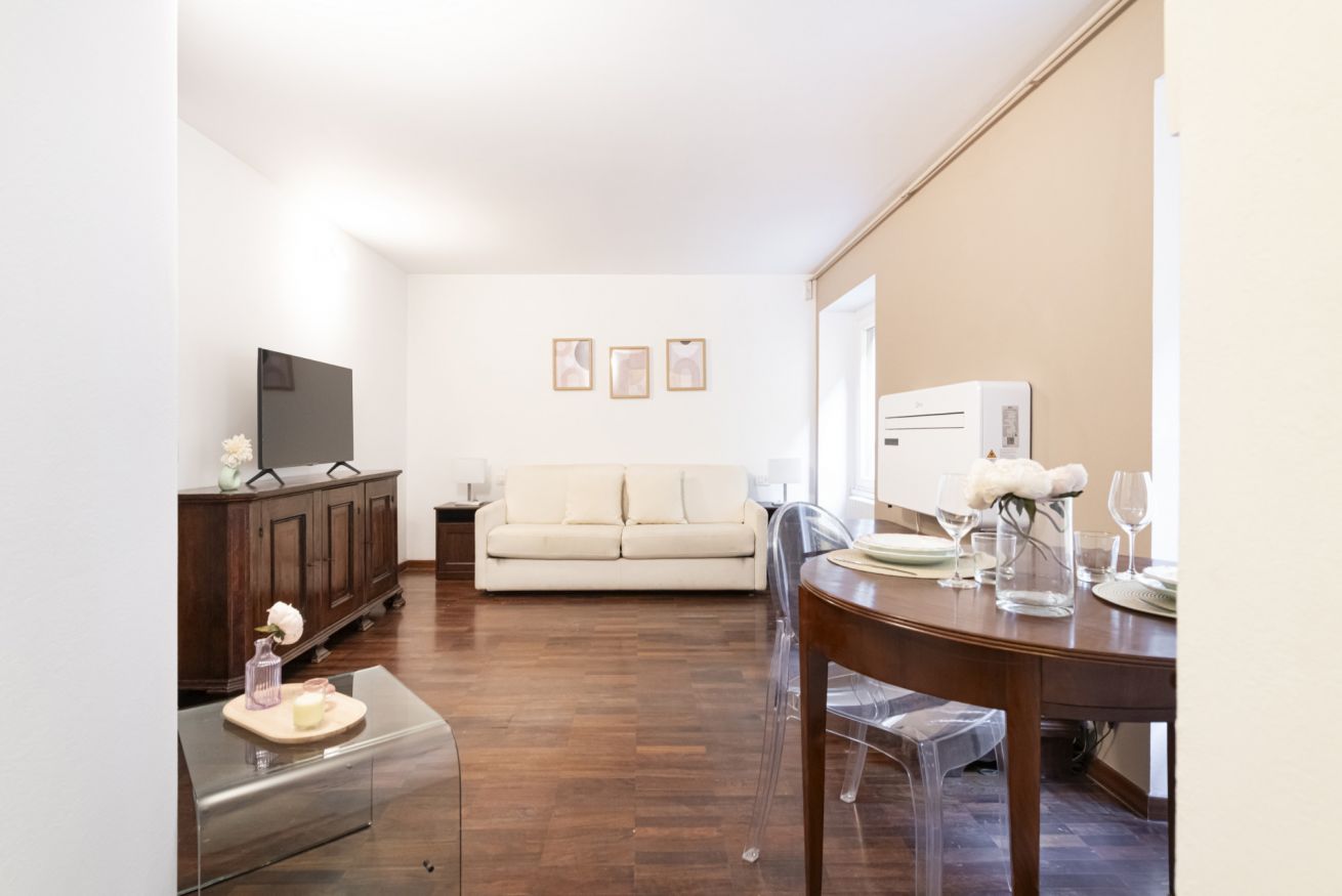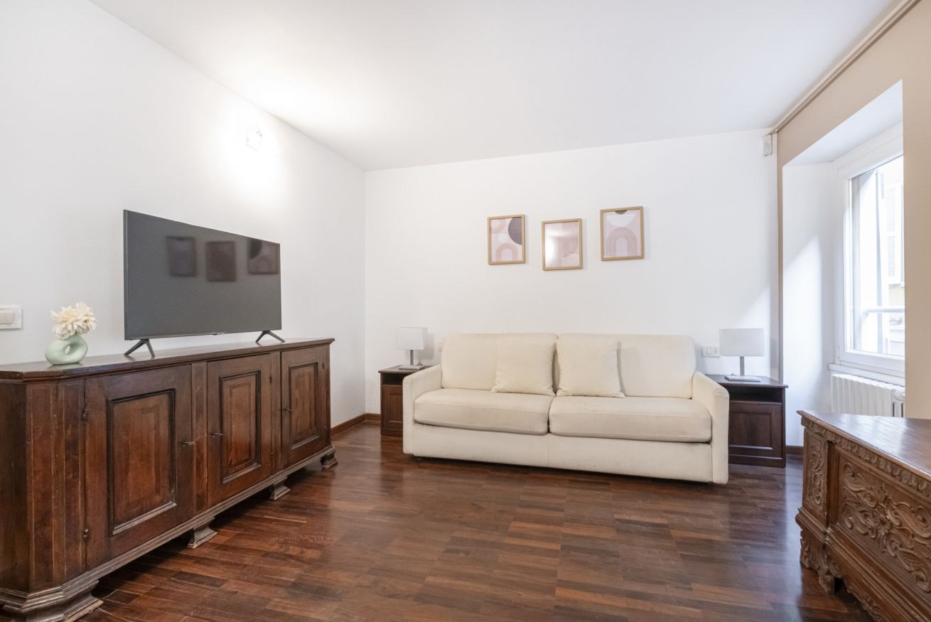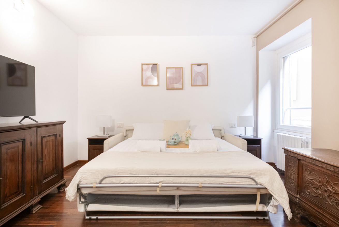 Scopri un raffinato monolocale climatizzato, ubicato al primo piano con ascensore in un elegante stabile nel cuore del quartiere Brera. L’ingresso conduce a un grande open space impreziosito da arredi in legno in stile antico e parquet originale: al centro, un comodo divano letto e una Smart TV a parete definiscono l’area relax; accanto si sviluppa una zona pranzo conviviale. La cucina angolare su misura, pensata per pasti rapidi ma con gusto, è dotata di elettrodomestici essenziali e finiture curate. Il bagno, moderno e funzionale, offre una spaziosa doccia walk-in in vetro, rivestimenti eleganti e comfort contemporanei. Ogni dettaglio – dalla scelta dei materiali al layout intelligente – è studiato per offrire un’esperienza abitativa che unisce charme storico e comfort moderno, in uno dei quartieri più suggestivi e vivaci di Milano.
