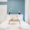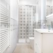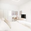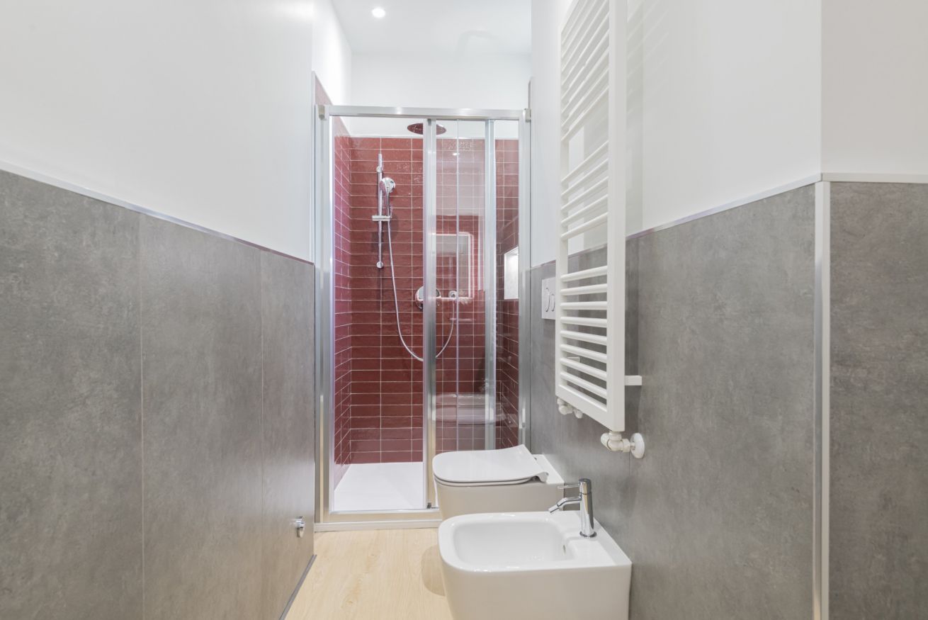 La zona notte si compone di tre camere: due eleganti camere matrimoniali e una camera singola, tutte arredate con gusto essenziale e progettate per garantire tranquillità e benessere. Una delle camere matrimoniali dispone di bagno en suite, offrendo maggiore privacy e comfort. I bagni, moderni e luminosi, sono dotati di docce contemporanee e finiture curate.