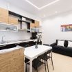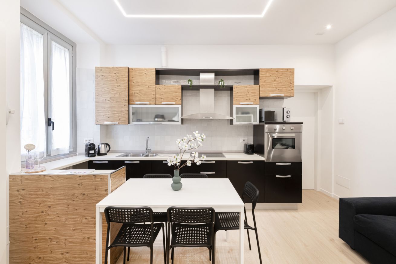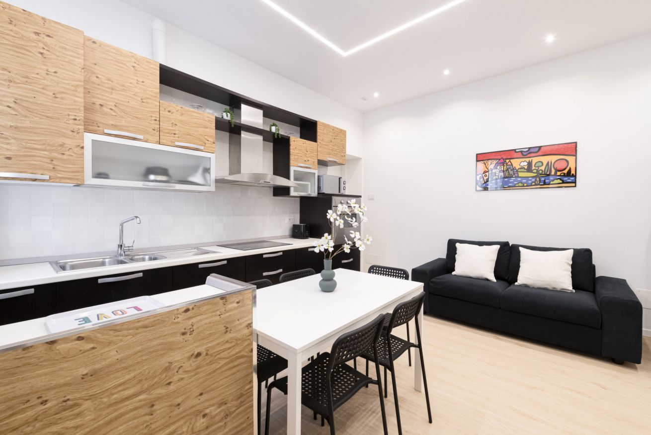 L’ingresso conduce a un ampio open space accogliente, dove la zona living si integra perfettamente con la cucina a vista, moderna e completamente attrezzata con tutti gli elettrodomestici, pensata per offrire massima funzionalità e comfort quotidiano. La zona pranzo, ben definita, crea un ambiente conviviale ideale per momenti di relax e condivisione.