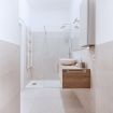 Il bagno, caratterizzato da una spaziosa doccia, combina funzionalità e design moderno, con finiture di qualità che assicurano un'esperienza quotidiana di benessere e comfort. A completare l'appartamento, un locale lavanderia indipendente, equipaggiato con lavatrice e asciugatrice, testimonia l'attenzione verso le esigenze pratiche della vita quotidiana, offrendo una soluzione comoda per la gestione degli indumenti.