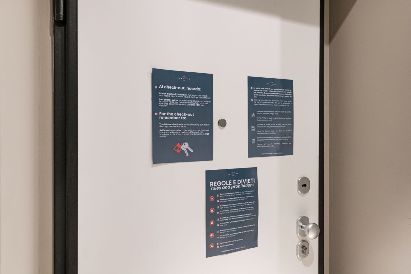 Questa struttura richiede il check-in online attraverso il proprio canale (www.easylife.house) e richiede ai propri ospiti l'immagine di un documento quale carta d'identità o passaporto per i cittadini dell'Unione Europea; SOLO passaporto per i cittadini extra Ue (NO permesso di soggiorno) per l'identificazione, la comunicazione e la registrazione dei flussi turistici alle autorità competenti. I dati personali saranno trattati in conformità con le disposizioni del regolamento generale sulla protezione dei dati (GPDR) legge 2016/679 del Parlamento europeo.