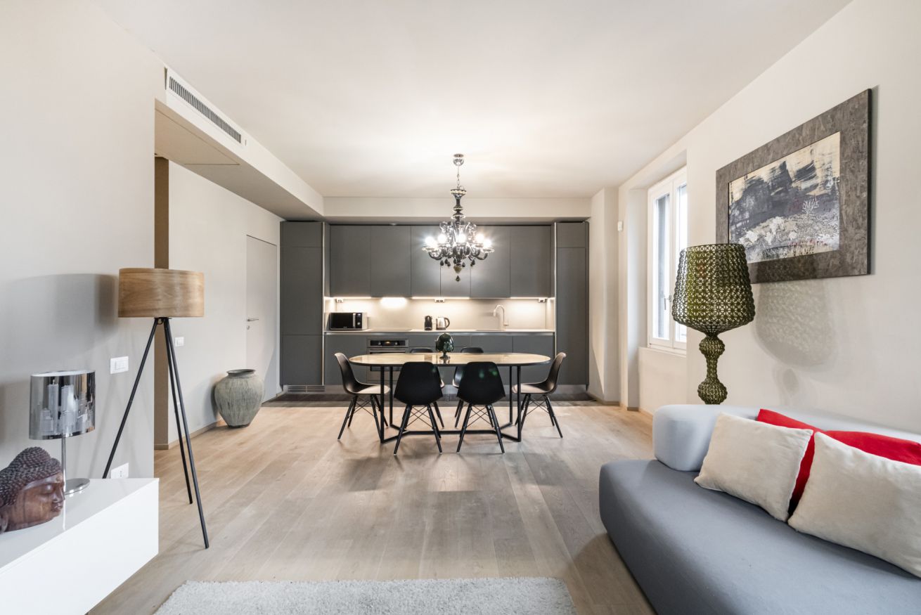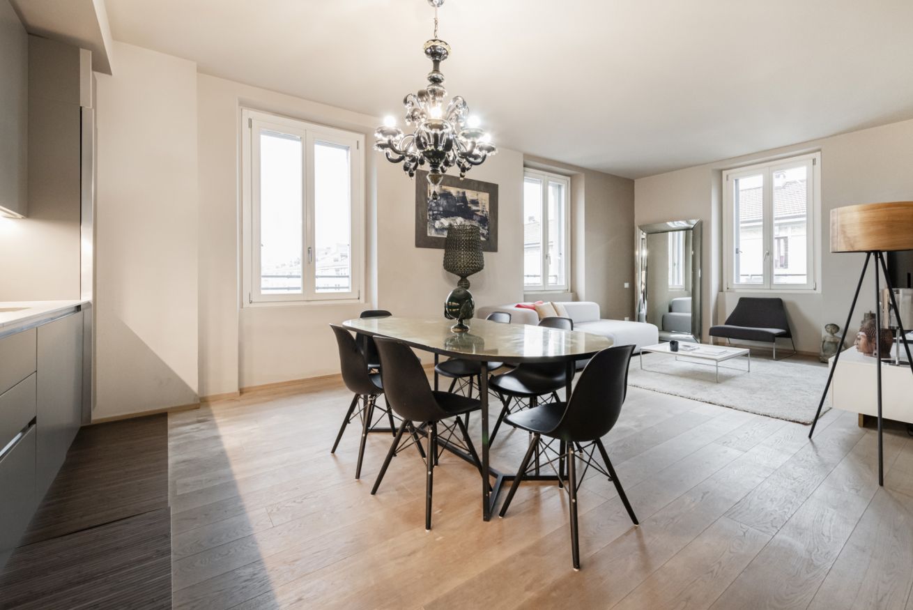 Splendido appartamento di design direttamente nel Fashion district. Finemente curato nei minimi particolari da studio di architettura, si trova in zona molto elegante e centrale nei pressi di Piazza Cinque Giornate.