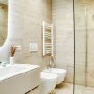 Il bagno principale è un capolavoro di design contemporaneo, caratterizzato da una spaziosa doccia walk-in in vetro che combina estetica e praticità. Un secondo bagno di servizio aggiunge ulteriore comodità all'abitazione.
