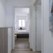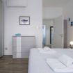 La zona notte, separata dalla zona giorno, è composta da una grande e confortevole camera matrimoniale, arredata in modo essenziale ma moderno, dotata di ampi armadi e una piccola scrivania, perfetta per lavorare o studiare. Un balconcino privato arricchisce la camera da letto, offrendo un'ulteriore fonte di luce naturale e la possibilità di godere di una piacevole vista sul quartiere.