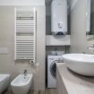Il bagno, di recente ristrutturazione, è spazioso e moderno, dotato di doccia, lavabo, bidet e wc. Tutti gli ambienti dell'appartamento sono dotati di aria condizionata e riscaldamento autonomo, garantendo il massimo comfort in ogni stagione.