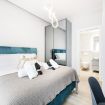 La zona notte si compone di una spaziosa camera matrimoniale, un vero santuario di tranquillità. La stanza è impreziosita da un ampio armadio con ante a specchio che amplifica la luminosità e l'ampiezza dell'ambiente, oltre a una smart TV a muro che aggiunge un tocco di modernità e comfort.