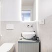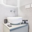 Il bagno, un vero gioiello di design, è completo di una spaziosa doccia walk-in in vetro, offrendo un'esperienza di benessere paragonabile a quella di una spa privata. Le finiture di alta qualità e l'attenzione ai dettagli rendono questo ambiente non solo funzionale ma anche esteticamente appagante.