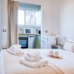 All'ingresso, sarai accolto da una luminosa zona notte arredata con un letto matrimoniale di alta qualità, un tavolo ideale per pasti veloci o momenti di lettura, e una raffinata scrivania in vetro, perfetta per le tue esigenze lavorative o di studio.