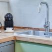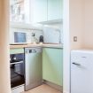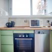 La cucina, separabile per assicurare maggiore privacy, è un angolo cottura moderno e funzionale, progettato su misura e completo di elettrodomestici, che ti permetteranno di sperimentare l'arte culinaria con facilità.