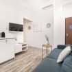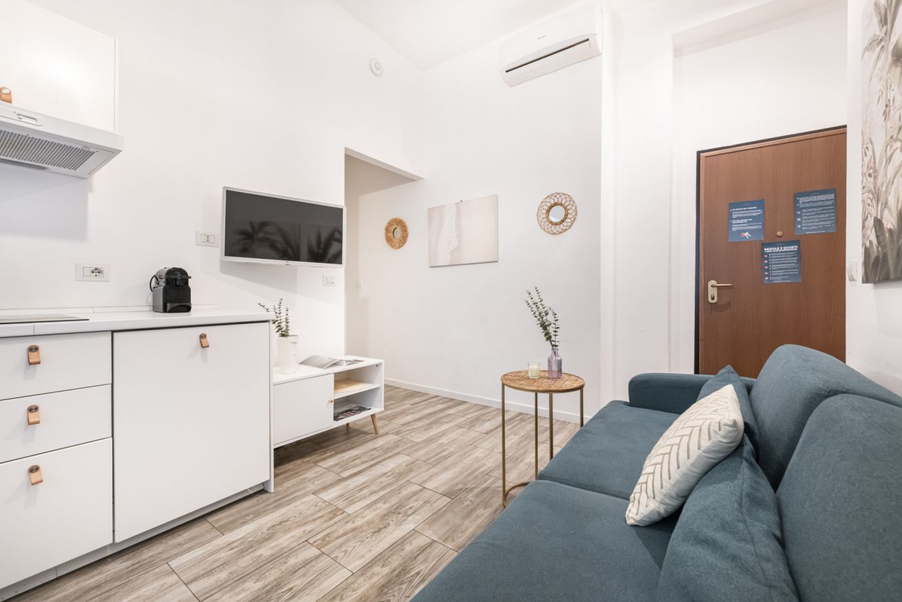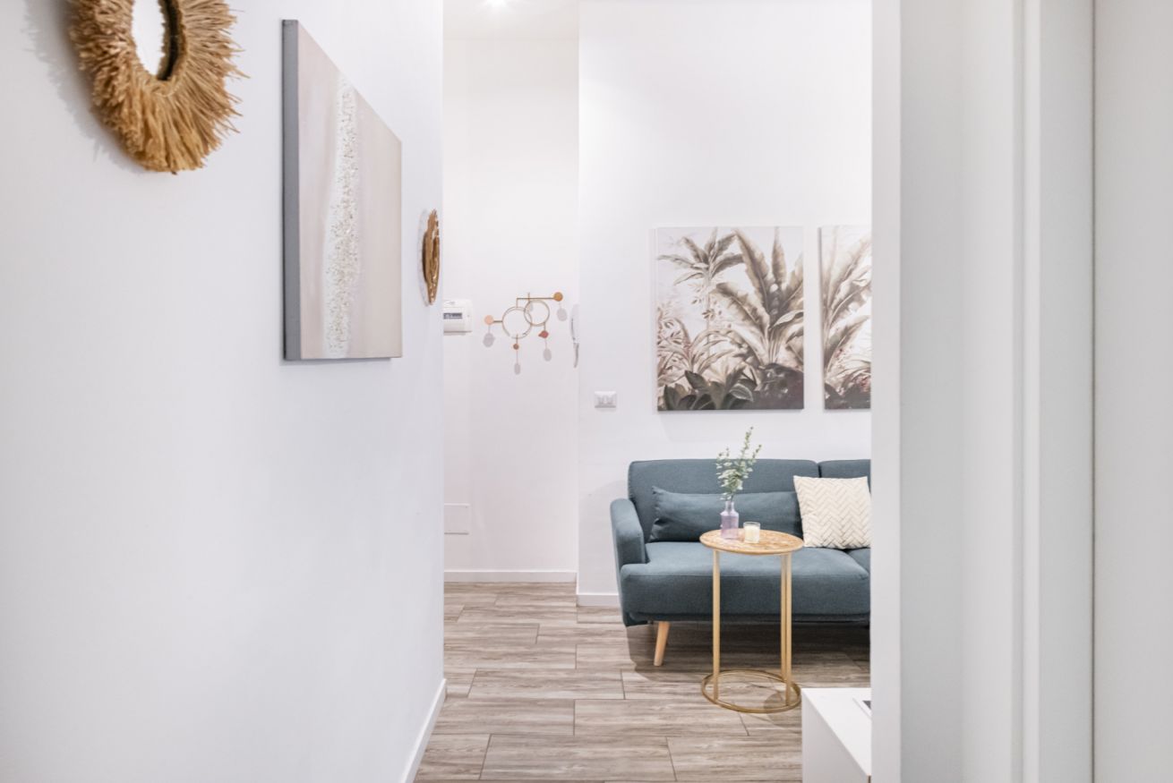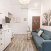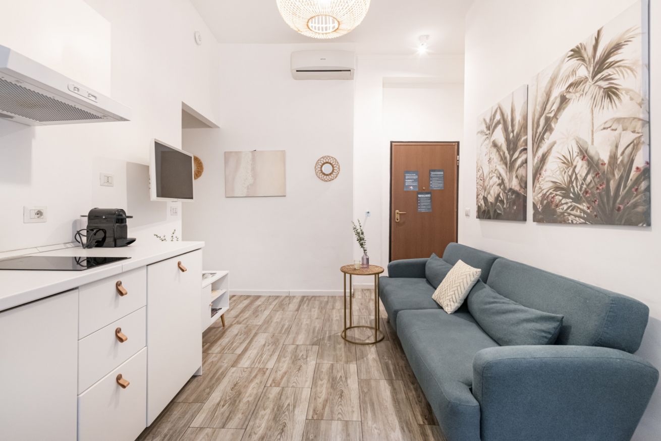 La zona living è un invito al relax e all'intrattenimento. La cucina a vista, completa di ogni comfort, si affaccia su un elegante spazio con divano e smart TV, creando un ambiente moderno e chic. Gli arredi raffinati e ben curati rendono questo spazio un rifugio di stile.