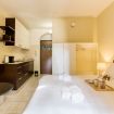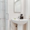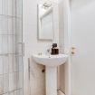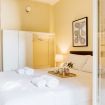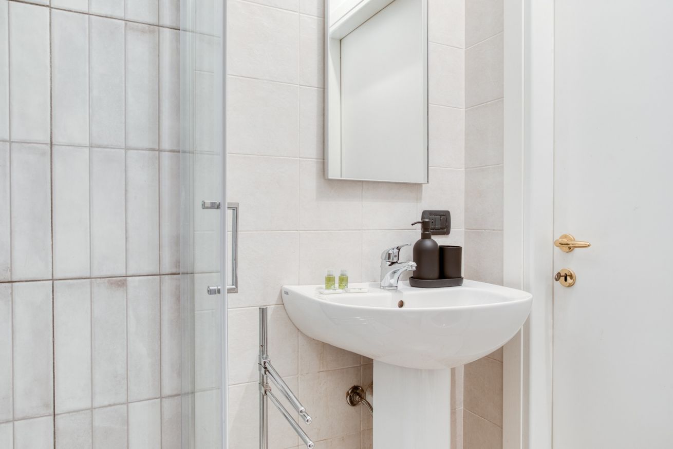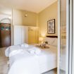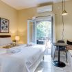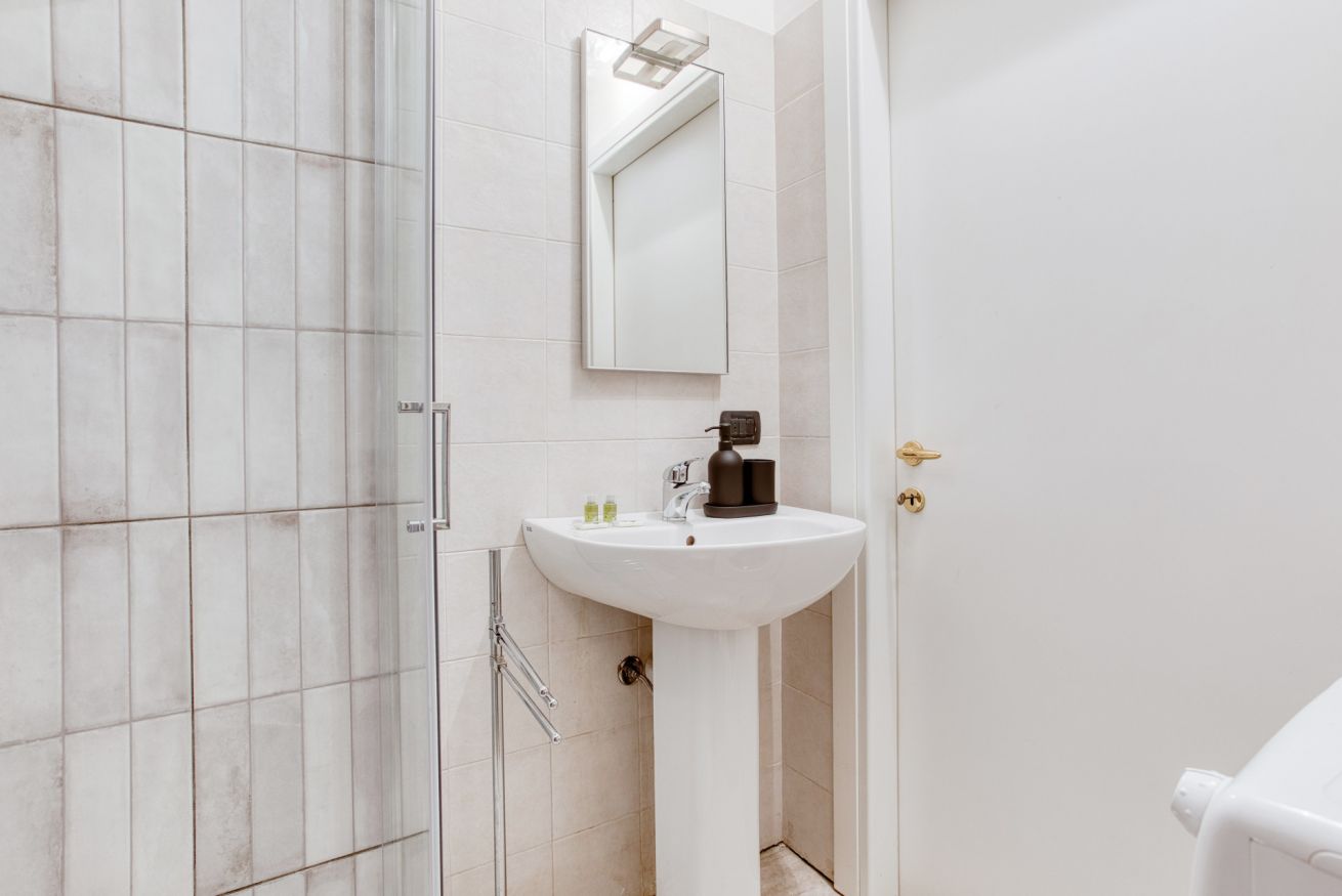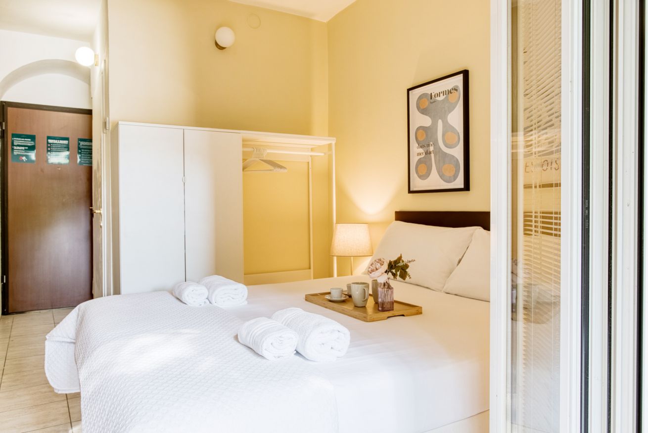 Varca la soglia di questo raffinato monolocale milanese e lasciati abbracciare da un’atmosfera intima e luminosa. Il cuore dello spazio è una zona living accogliente, dominata da un letto matrimoniale dai tessuti candidi, adornato da dettagli ricercati come un vassoio con tazza e fiori e illuminato dalla luce naturale che filtra da un balconcino interno, silenzioso e riservato: l’angolo perfetto per iniziare la giornata con serenità.