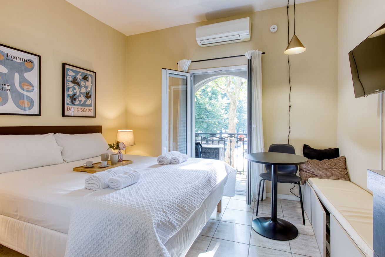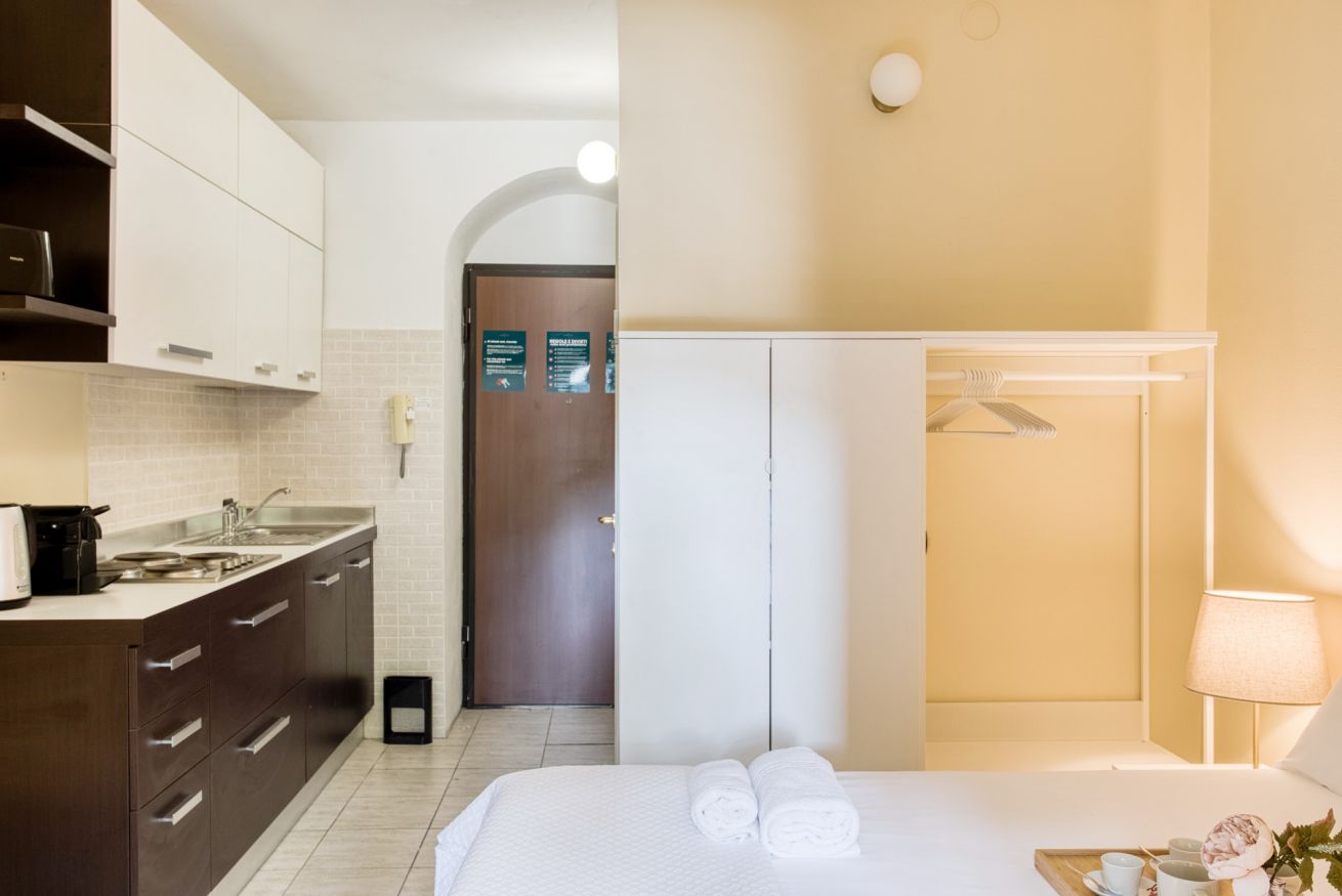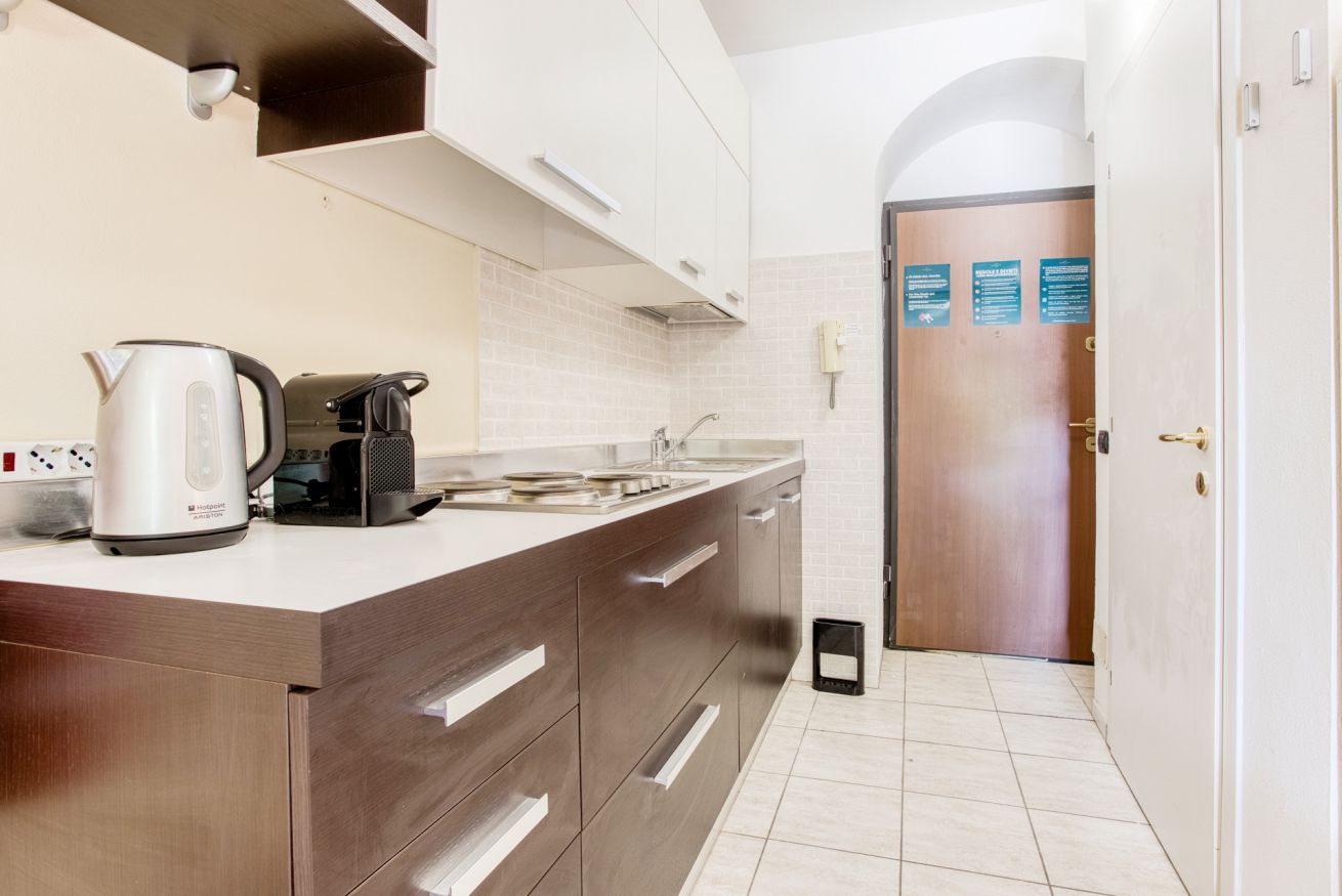 Varca la soglia di un monolocale luminoso, al primo piano senza ascensore affacciato su un suggestivo balcone. Una camera da letto matrimoniale con rifiniture eleganti. La zona pranzo, intima con tavolino tondo, è ideale per colazioni rilassate o momenti veloci. La cucina compatta, con mobili moderni ed elettrodomestici, unisce praticità e stile. Il bagno è un comfort essenziale: doccia in cristallo, lavabo funzionale e lavatrice integrata, pensato per la comodità quotidiana.