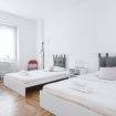 L'appartamento dispone inoltre di una seconda camera spaziosa con due letti singoli, ideale per ospiti o bambini, anch'essa dotata di una smart TV. Una terza camera, arredata con un letto alla francese, smart TV, armadio e un piccolo balcone, offre ulteriore spazio e privacy.
