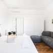 La camera matrimoniale, ampia e sofisticata, è arredata con un grande armadio a muro per un’organizzazione impeccabile e un divano di design che arricchisce l’ambiente con un tocco di eleganza. Il bagno, completamente rinnovato, vanta una doccia spaziosa che aggiunge un tocco di lusso alla routine quotidiana.