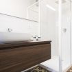 Dettagli ricercati caratterizzano l’appartamento: un magnifico parquet in legno scuro posato a lisca di pesce corre lungo tutti gli ambienti, aggiungendo calore e fascino, mentre dettagli di design completano l’estetica ricercata, per un’atmosfera esclusiva e accogliente.