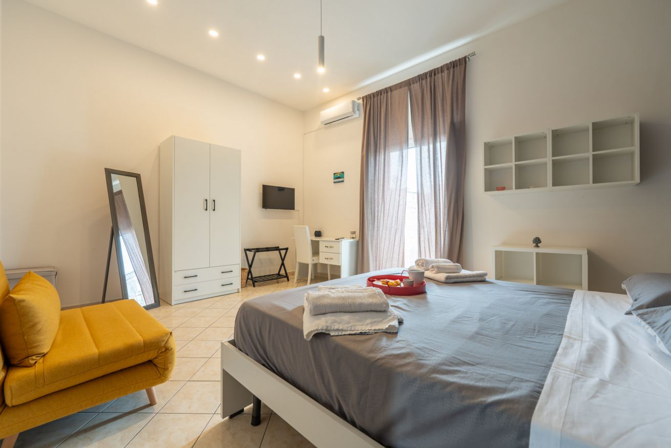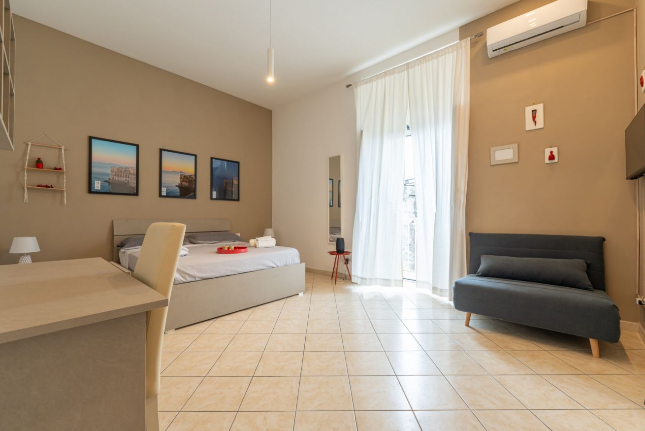 Scopri un gioiello urbano nel cuore del centro storico di Napoli: un appartamento climatizzato e ristrutturato di recente, collocato al 4° piano con ascensore, in un palazzo con affaccio sulle antiche vie napoletane. L’ingresso accoglie con un comodo divano, preludio di uno spazio pensato per unire design e comfort. Due camere matrimoniali dominate dalla luce naturale, ciascuna con balcone privato, armadi su misura, Smart TV, poltrona letto e scrivania funzionale per chi lavora o sogna in grande.