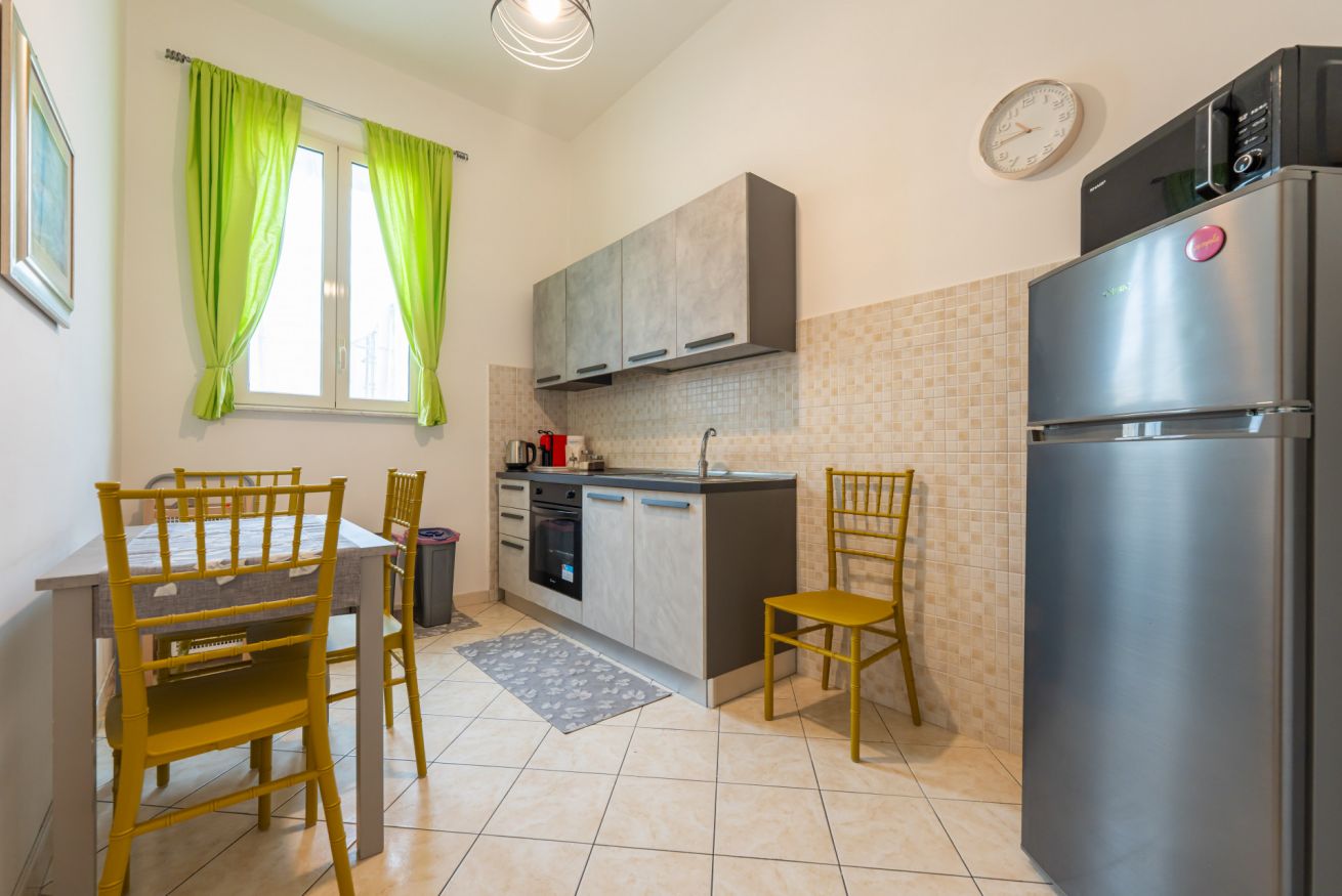 Appartamento climatizzato al 4° piano con ascensore, nel centro storico di Napoli. Ingresso su zona living con comodo divano; due camere matrimoniali spaziose e luminose ciascuna con balcone privato, armadio, Smart TV e scrivania. Due bagni completi con doccia. Cucina lineare moderna, completamente attrezzata con zona pranzo conviviale. Soluzione ideale per chi vuole comfort e stile nel cuore della città.