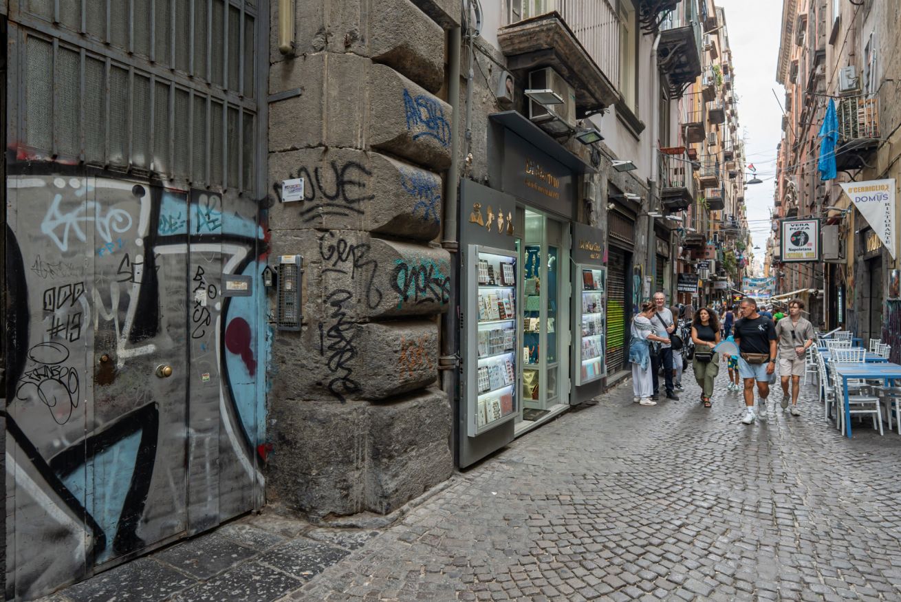 Via dei Tribunali, un tempo cardine centrale, conserva vicoli, chiese minori e l’odore del cibo di strada.