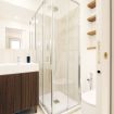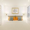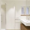 The master bedroom represents a true haven of tranquility, equipped with a smart TV and a luxurious en suite bathroom, complete with a spacious walk-in glass shower. The second bedroom, ideal for guests or family, also has a smart TV, ensuring entertainment and comfort. An additional bathroom, elegant and functional, is embellished with a modern walk-in glass shower.